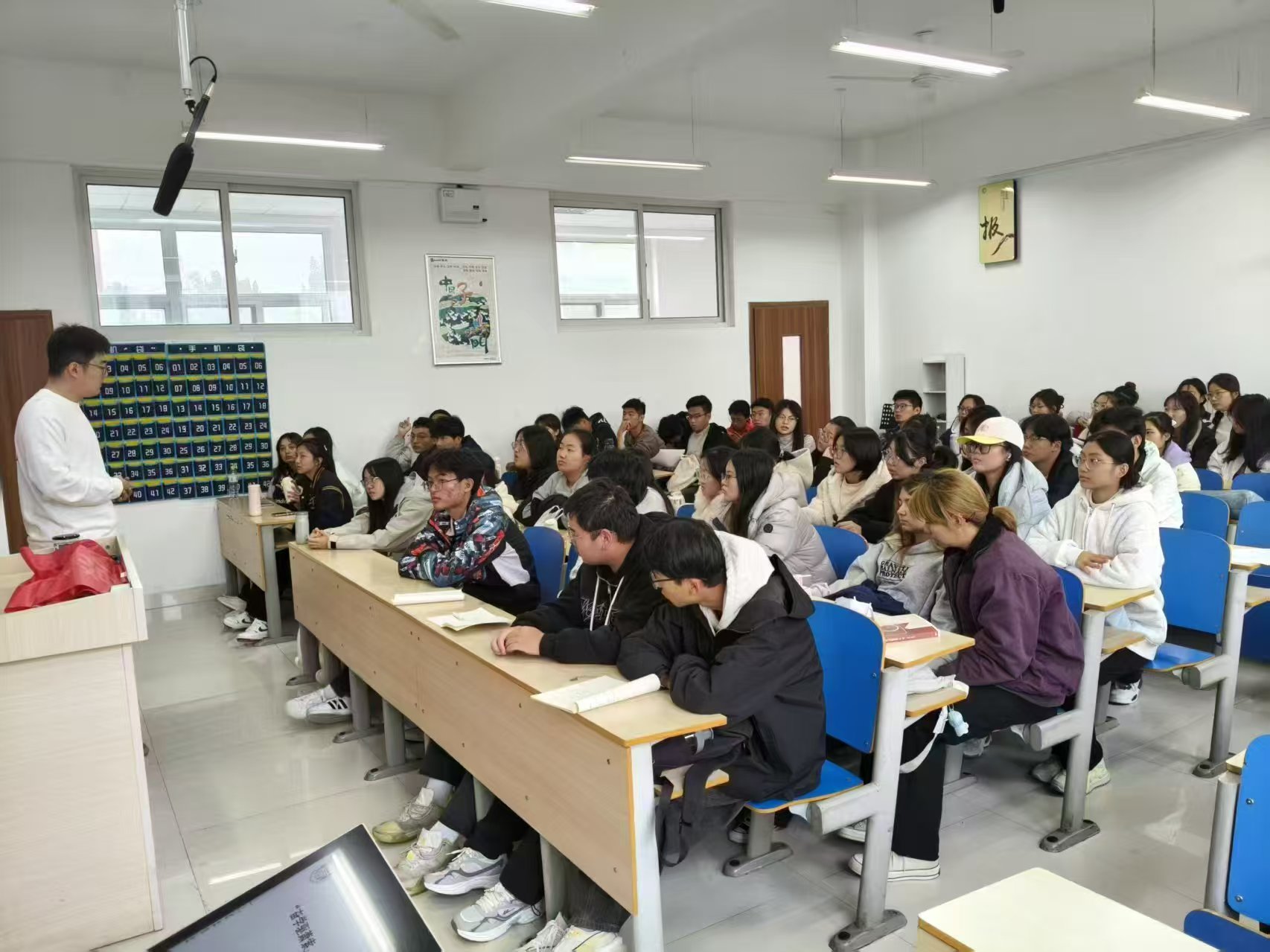 活动宣讲人于进以“我们上大学究竟需要做什么”的问题开篇,指出大学生涯很短暂,作为一名大一新生,“我们应该明白我们为什么要上大学”,应当有一个目标。目前我们的社会正处于急需高素质人才的关键时候,我们应该要让自己的目标适应当今社会,鼓励自己高效的面对大学学习。他系统讲解关于本科生和研究生的根本区别,鼓励我们向着更高学历探索。同时鼓励大家积极参与竞赛活动,深化特定学科的理解,锻炼逻辑思维、抗压能力以及问题解决能力,优质竞赛奖项还可能为升学提供优势,形成“以赛促学”的正向循环。于进指出,“没有规矩不成方圆”,我们应该做到不空课,不迟到,不早退。他还特别强调我们应坚定理想信念,为我们的未来发展提供指导,让正确的认知、信念和价值观内化为行为准则和行动自觉,而非停留在表面认知。于进还提到我们要增强反诈骗意识,不去参加,陌生的聚众活动,过健康合法的大学生活。
