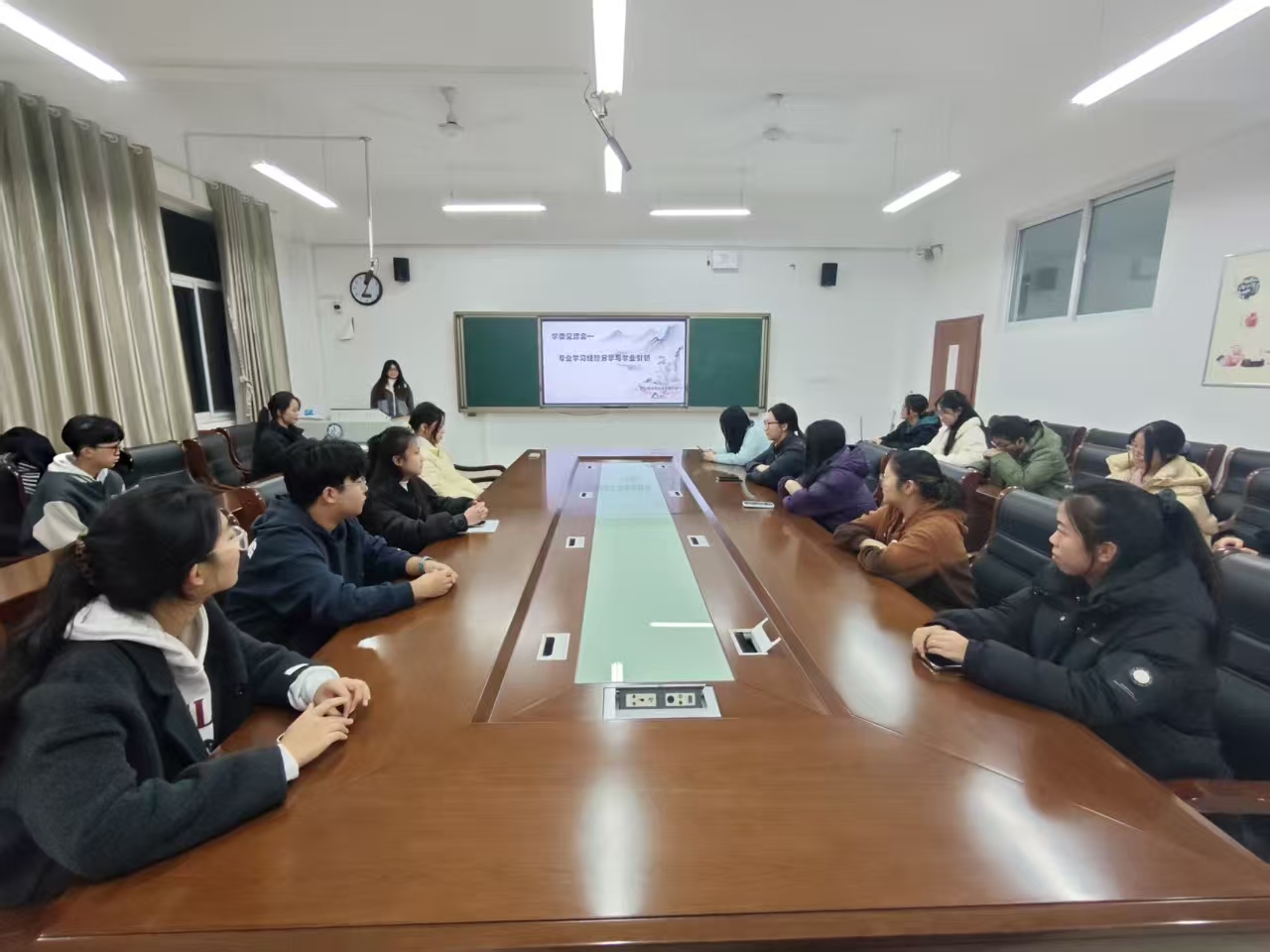本次活动由在专业学习和综合发展方面表现优异的李鑫担任活动主讲人,她与各班级学习委员及部分学生代表在交流会上进行深入的交流与分享。李鑫根据自己的学习成长经历,分别从课程学习、时间管理、竞赛参与与科研入门等多个维度,分享宝贵经验。她强调,扎实的专业基础是未来发展的基石,同学们应在日常学习中注重课堂效率,及时梳理知识体系,并在大量阅读和专业实践中不断深化理解。针对同学们普遍关心的问题,例如如何平衡学习、学生工作与个人生活的时间。李鑫分享“目标导向、模块规划、动态调整”的时间管理方法,鼓励大家提高单位时间效率。她就同学们提出的“如何有效备考”“怎样选择并准备学科竞赛”“低年级同学如何初步接触科研项目”等具体问题,给予耐心细致的解答。她建议学委们不仅要做好自身学业的表率,还要主动关心同学们的学习状态,积极地组织学习小组、答疑活动等,在班级内部形成互帮互助、共同进步的良好风气。本次活动现场气氛热烈,与会同学纷纷表示收获颇丰。