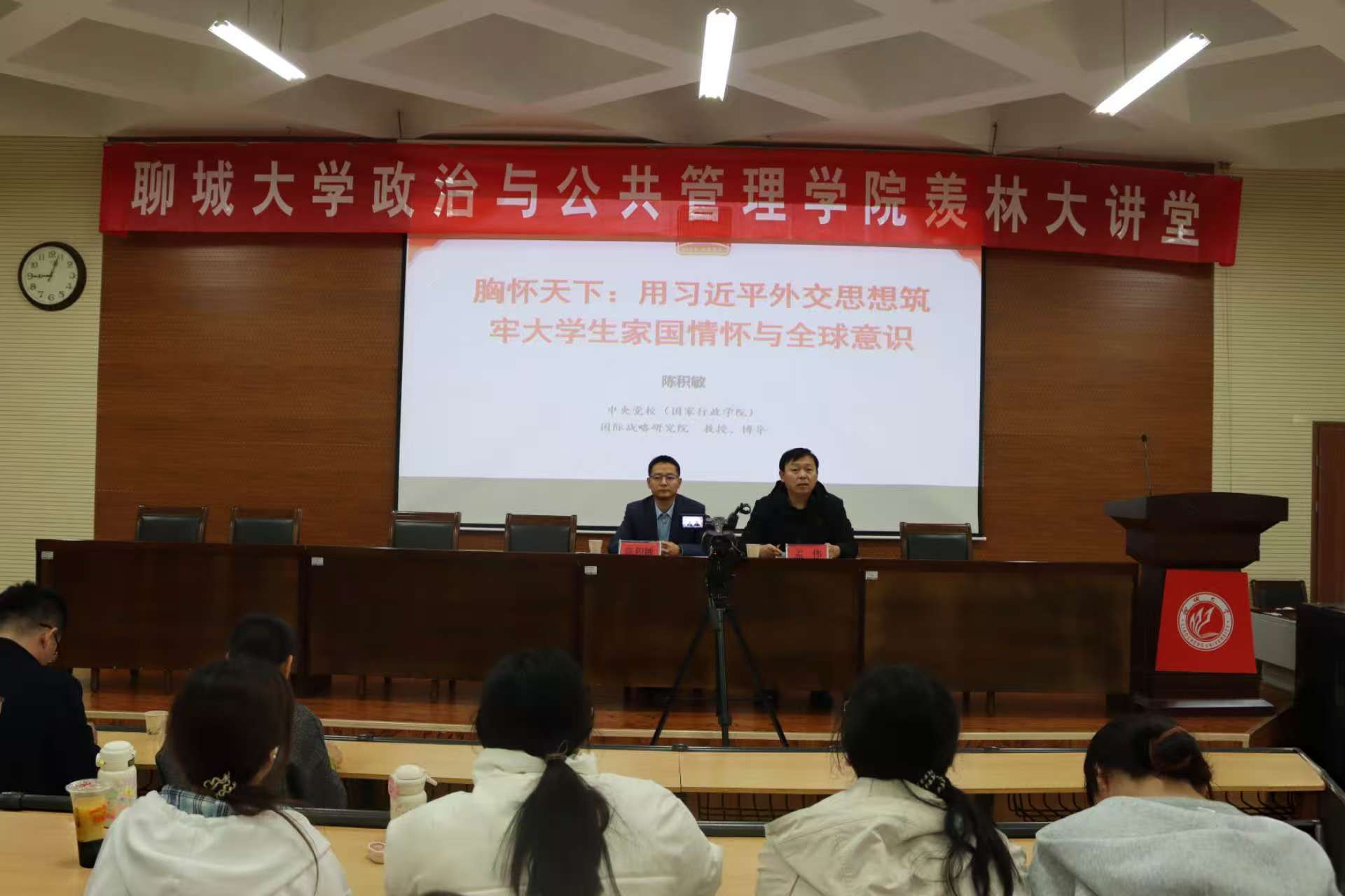 此处活动有幸邀请中共中央党校(国家行政学院)国际战略研究院美拉所所长、教授,国家社科基金重大专项等多个项目首席专家陈积敏作为活动主讲人,他围绕“胸怀天下:用习近平外交思想筑牢大学生家国情怀与全球意识”专题内容讲座展开,介绍中国全方位外交布局的举措与成效。陈积敏深入解读外交部的政策,强调中国在百年大变局背景下取得的社会主义成就和习近平外交思想的重大意义,特别提到共建一带一路、文化交流、人类命运共同体以及经济全球化思想的实践。其中他提出“我们怎么对待世界的变化?的问题,针对这一问题,他提到我们需要注意三部分,第一个是明确中国特色大国的外交,第二个是明确中国外交坚持的基本目标,第三个是实现这个目标。同学们踊跃参与对目标实现方法的讨论,王冰艳认为大家需要同舟共济,通过合作共赢的方式来实现这个目标。陈积敏做出总结,我们处于机遇与挑战并存的时代,这个机遇最大的是中国自身力量的发展壮大,现在我们须主动塑造环境,助力中国发展。在提及大学的规划时,他建议同学们利用好时间,在更广阔的道路上,搞准世界目标,搞准时代目标,搞准自己目标,坚定历史自信,坚定世界发展大势。